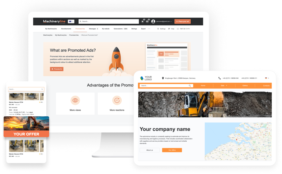 I vostri prodotti o servizi sono pubblicizzati su Machineryline sotto forma dei banner separati, attirando l'attenzione del pubblico di destinazione e attirando potenziali clienti sul sito.